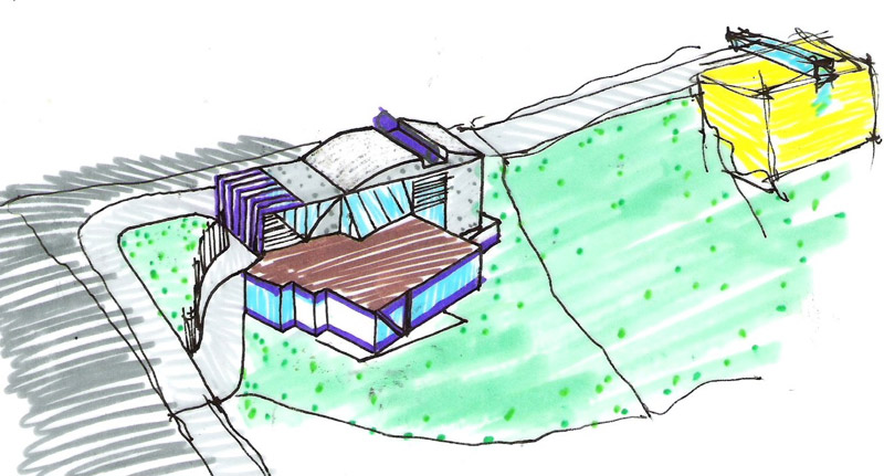 Na implantação do projeto da casa no terreno buscou-se promover poucos cortes, a terra retirada será utilizado nos aterros sugeridos no projeto, como o talude de três metros entre a calçada e o bloco do atelier na Rua Terra, também no aterro promovido para a criação de um platô para a implantação do bloco de concreto do atelier.