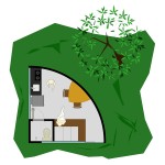 Na versão de abóbada de tijolo, a estrutura autoportante dá-se pelo o que o próprio nome indica, na qual tijolos são sobrepostos um aos outros em uma formação de equilíbrio e sustentação. Neste projeto, os ambientes da cozinha, sala de jantar/estar e banheiro se dispõem no primeiro pavimento, ao que o dormitório se instala no segundo. Além disso, pensado em um terreno plano, o projeto não vê necessidade de movimentação de terra, bem como soluções estruturais outras para implantação do edículo no terreno.